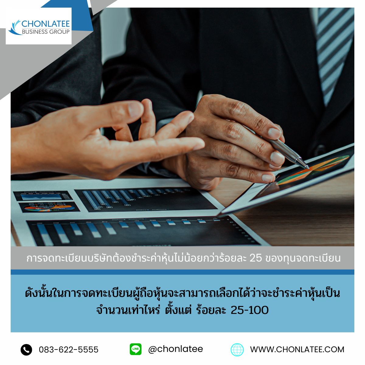 การจดทะเบียนบริษัทต้องชำระค่าหุ้นไม่น้อยกว่าร้อยละ 25 ของทุนจดทะเบียน