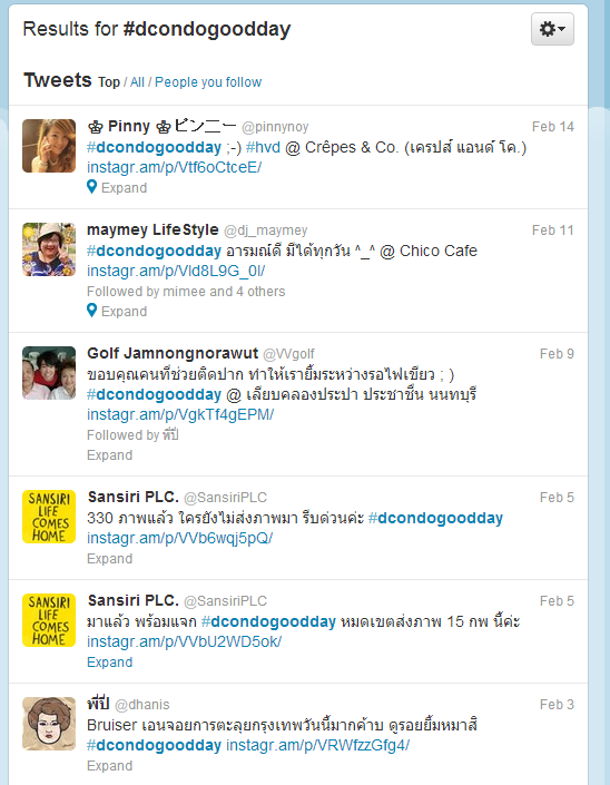 ตัวอย่างของไทยที่จะยกขึ้นมาก็คือ แสนสิริ ที่ใช้แทบทุกช่องทางของโซเชียลมีเดีย แต่สิ่งที่ยึดแน่นมากนั่นคือการใช้ hashtag ที่เป็นชื่อเดียวกันในทุกๆ ที่