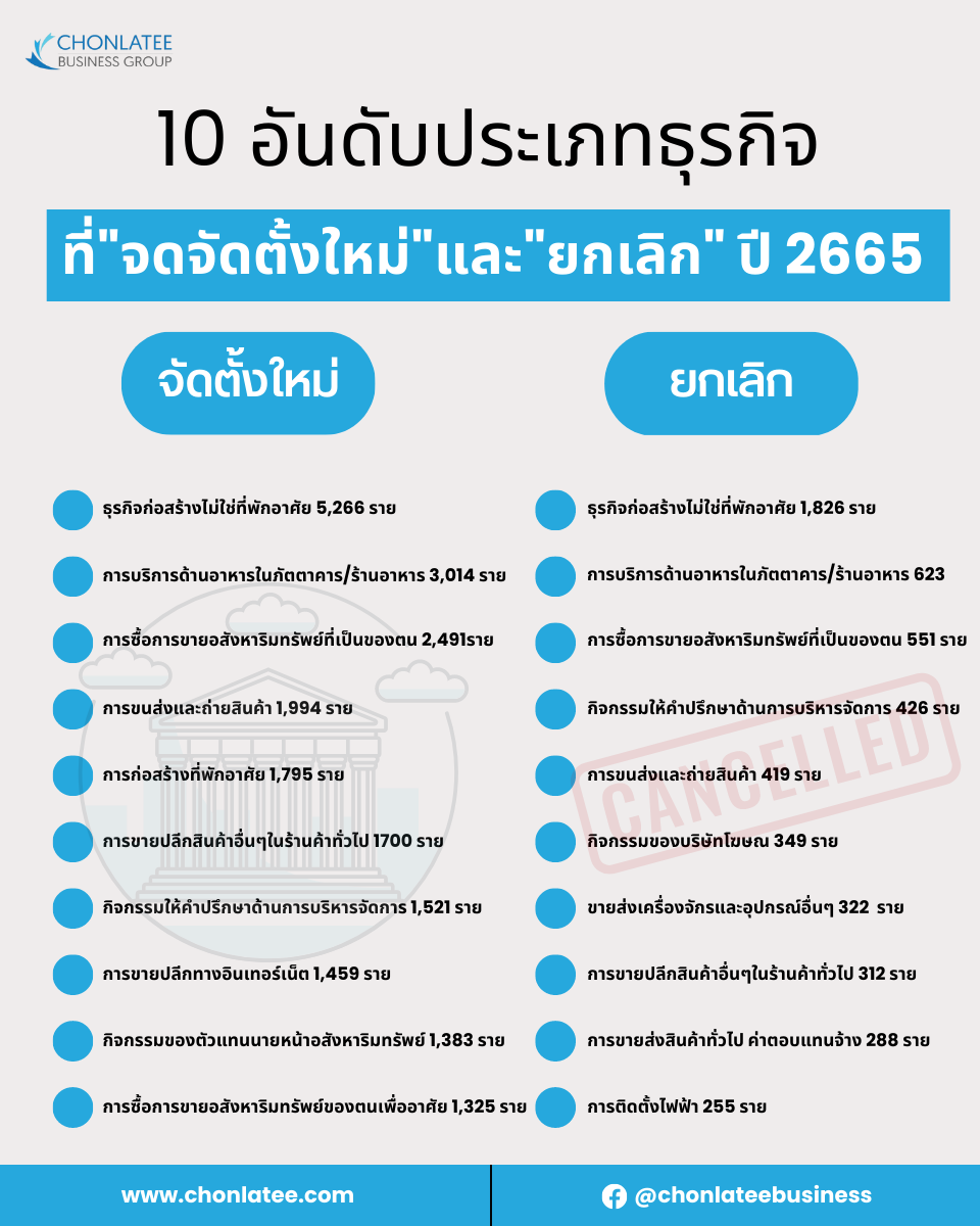 เปิด 10 อันดับผลการจดทะเบียนธุรกิจประจำปี 2565