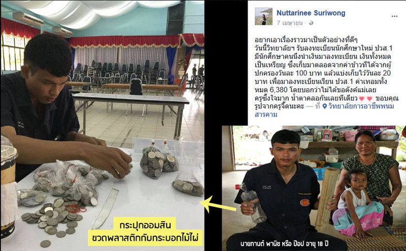 ในช่วงเดือนเมษายน 2560 เชื่อว่าหลายคนน่าจะเคยเห็นการแชร์เรื่องราวบน FB และสื่อโทรทัศน์ ของนักเรียนคนหนึ่งที่ออมเงินจากค่าขนมมาจ่ายค่าเทอมจำนวน 6,380 บาท เรามาดูกันว่าเขาเป็นใครมาจากไหนและมีวิธีการออมเงินอย่างไร